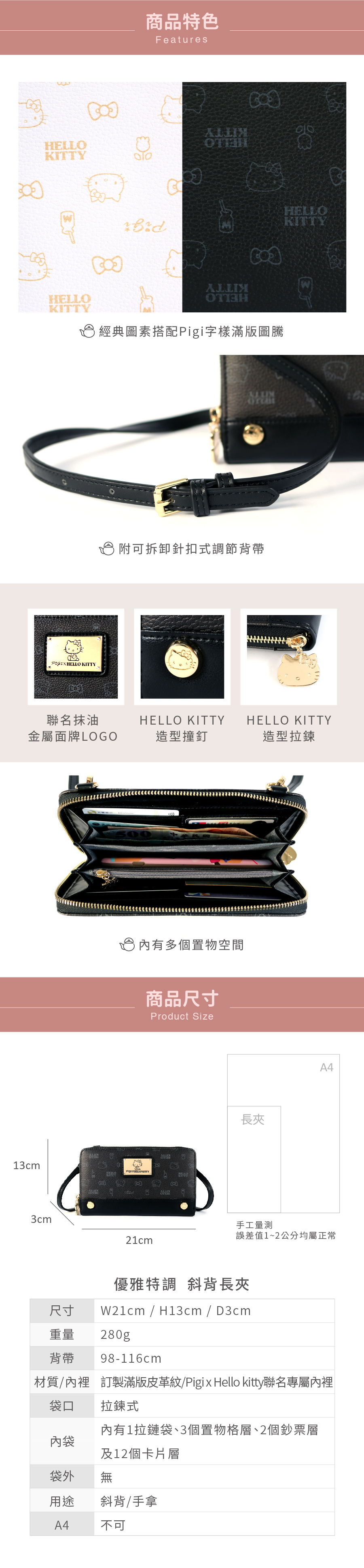 M340 PG x HELLO KITTY 優雅特調 斜背長夾